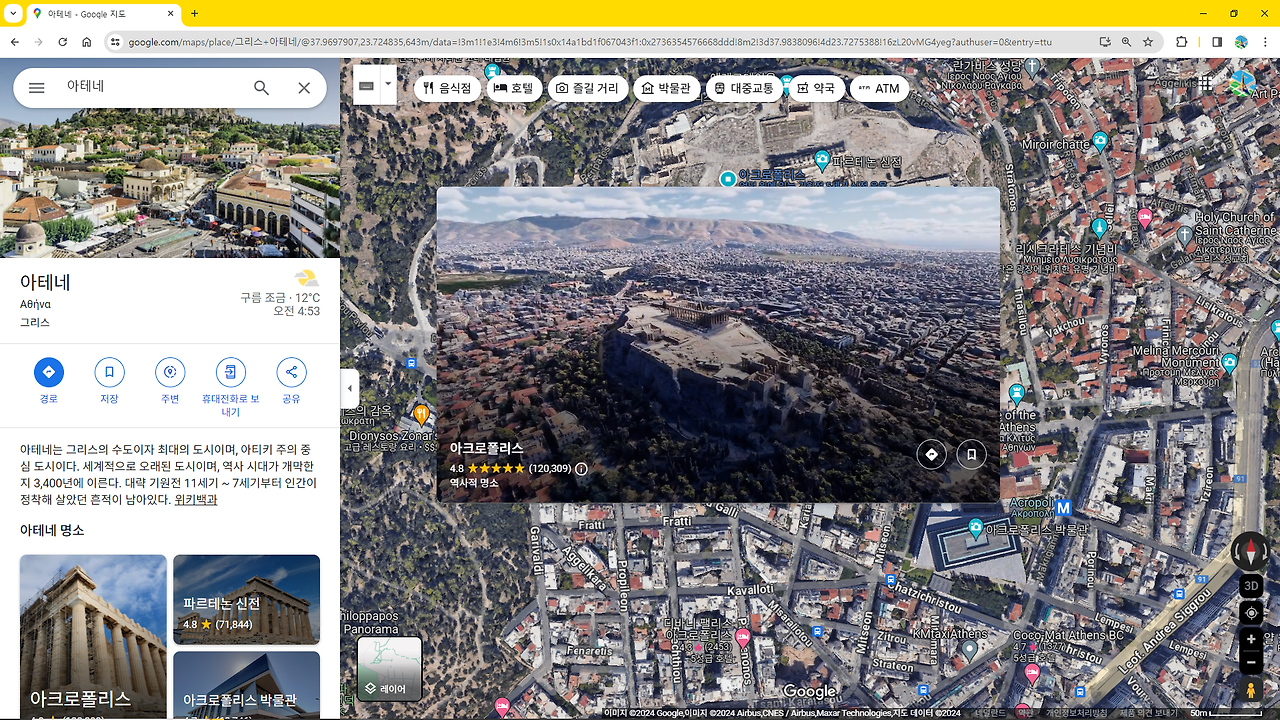 데스크톱 버전의 몰입형 뷰 - 아테네 아크로폴리스 언덕