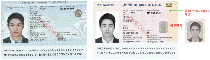 대한민국 여권의 개인정보면(구 여권과 신 여권)
