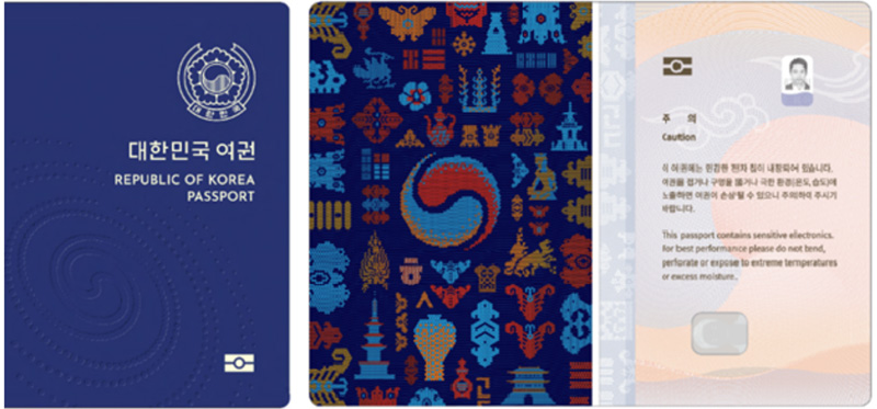 우리나라의 경우 기존 여권의 속지는 숭례문과 다보탑의 두가지 디자인이 번갈아가며 있었으나 새롭게 발급된 여권의 속지에는 각 시대별 대표 유물을 배치하여 페이지마다 다른 디자인을 적용하고 있다.